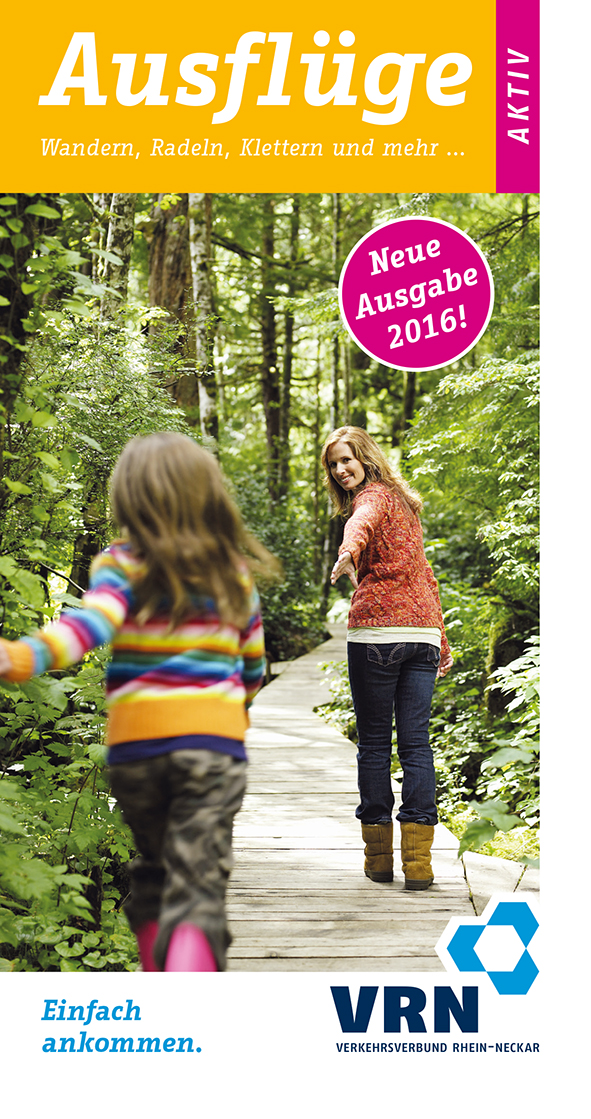 Wandern, radeln, klettern und mehr – über 130 Ausflugstipps im Rhein-Neckar-Gebiet. Eine Ausflugsbroschüre des Verkehrsverbundes Rhein-Neckar.